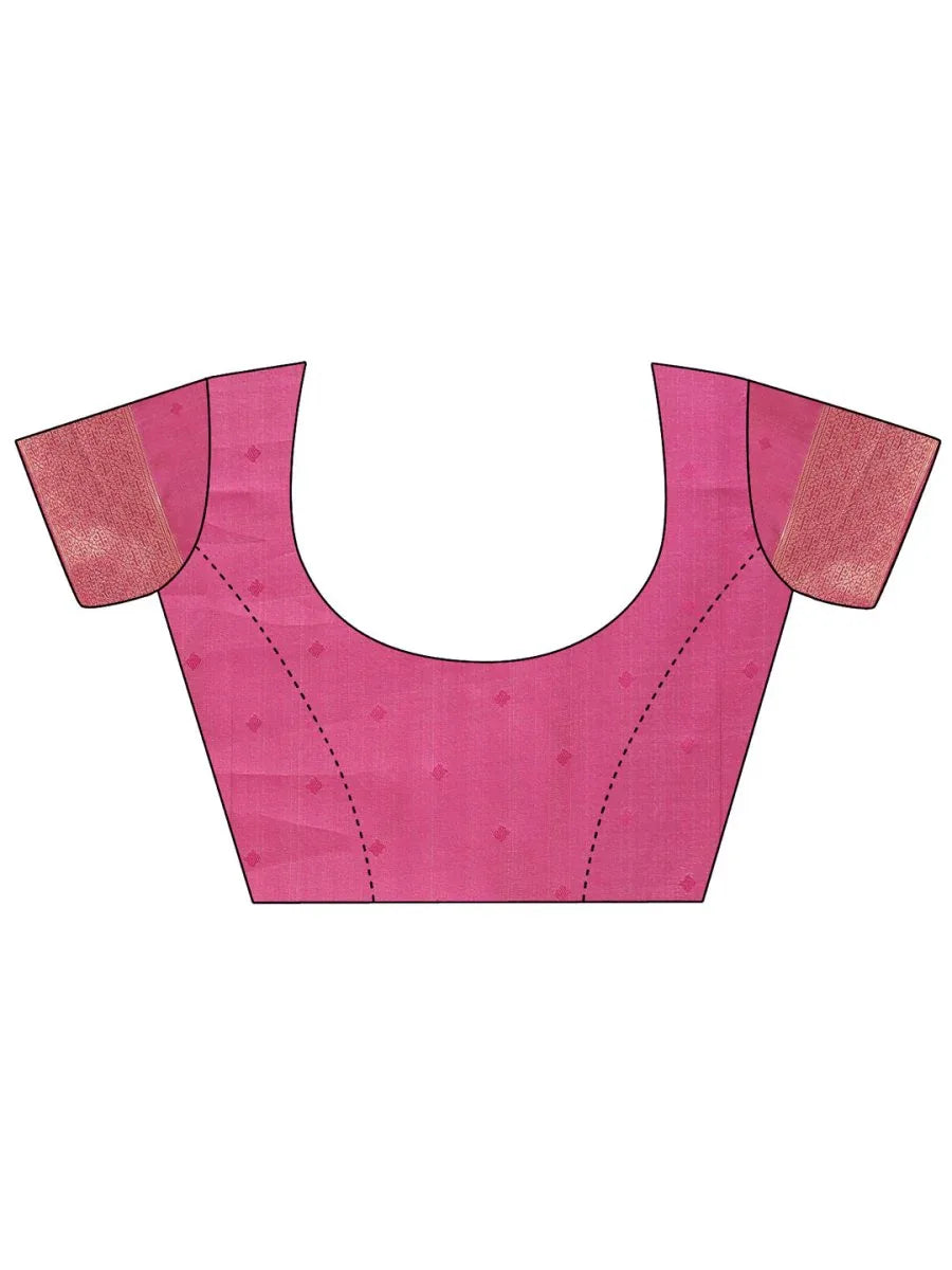 Cream & Magenta Banarasi Silk Saree With Blouse Piece