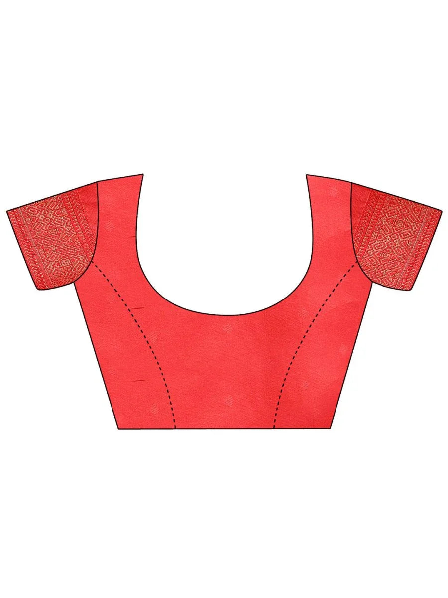 Cream & Red Banarasi Silk Saree With Blouse Piece