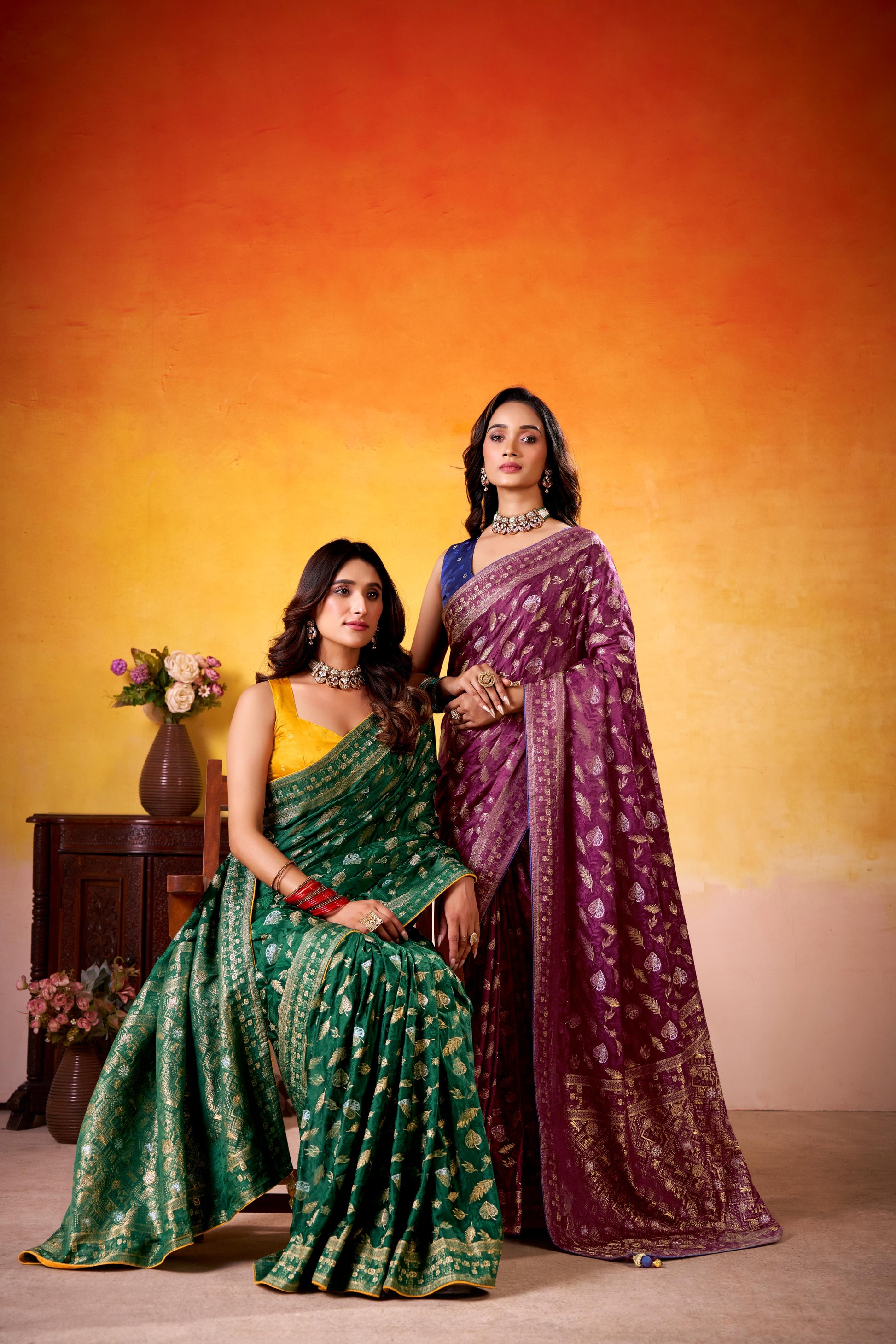 Elevate your ethnic wardrobe with this exquisite handloom silk saree, meticulously crafted with intricate dolla silk woven designs. Each piece showcases traditional weaving techniques that create a luxurious texture and refined aesthetic. The sophisticated pattern work adds depth and elegance, making it perfect for weddings, festivals, and special occasions. Complemented by a coordinating blouse piece, this saree offers a complete, polished look. Drape yourself in timeless craftsmanship and understated luxury that celebrates heritage and artistry.