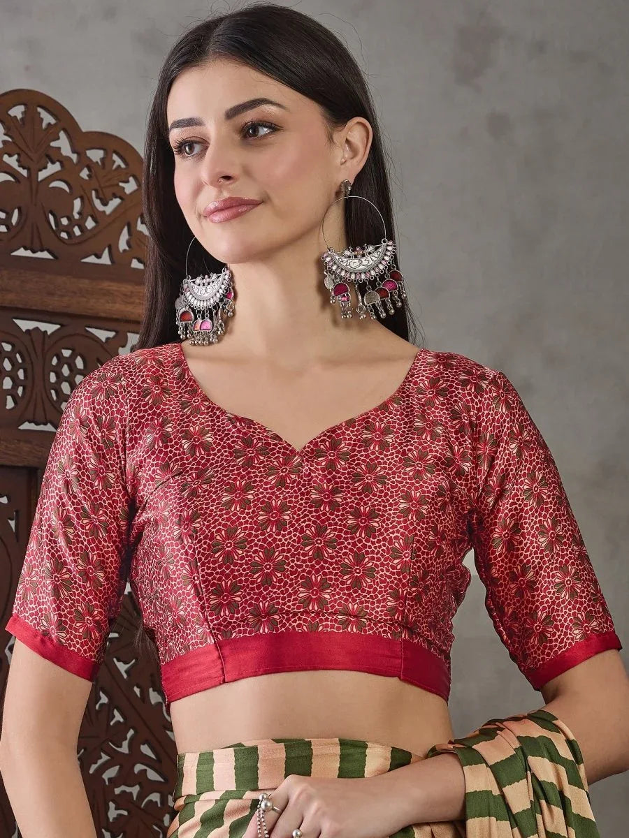 Step into freshness with this vibrant green semi-modal saree that's bursting with personality! The lightweight semi-modal fabric moves with you, keeping you breezy and comfortable while you shine. This stunning green shade brings a refreshing vibe to any occasion—whether it's a celebration, family gathering, or when you simply want to feel amazing. Comes complete with a coordinating blouse piece, so you're ready to dazzle!