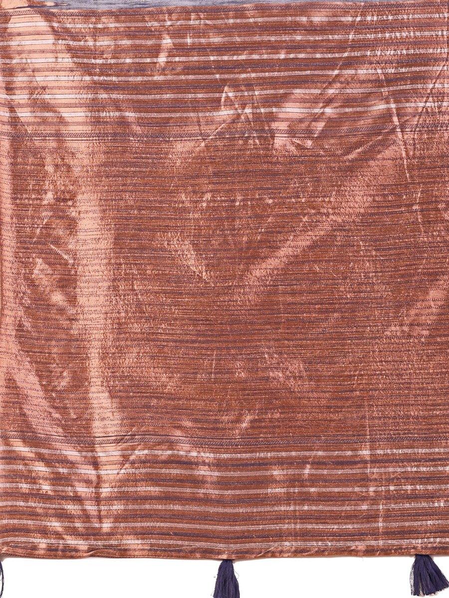 Navy Blue Linen Cotton Saree With Blouse Piece