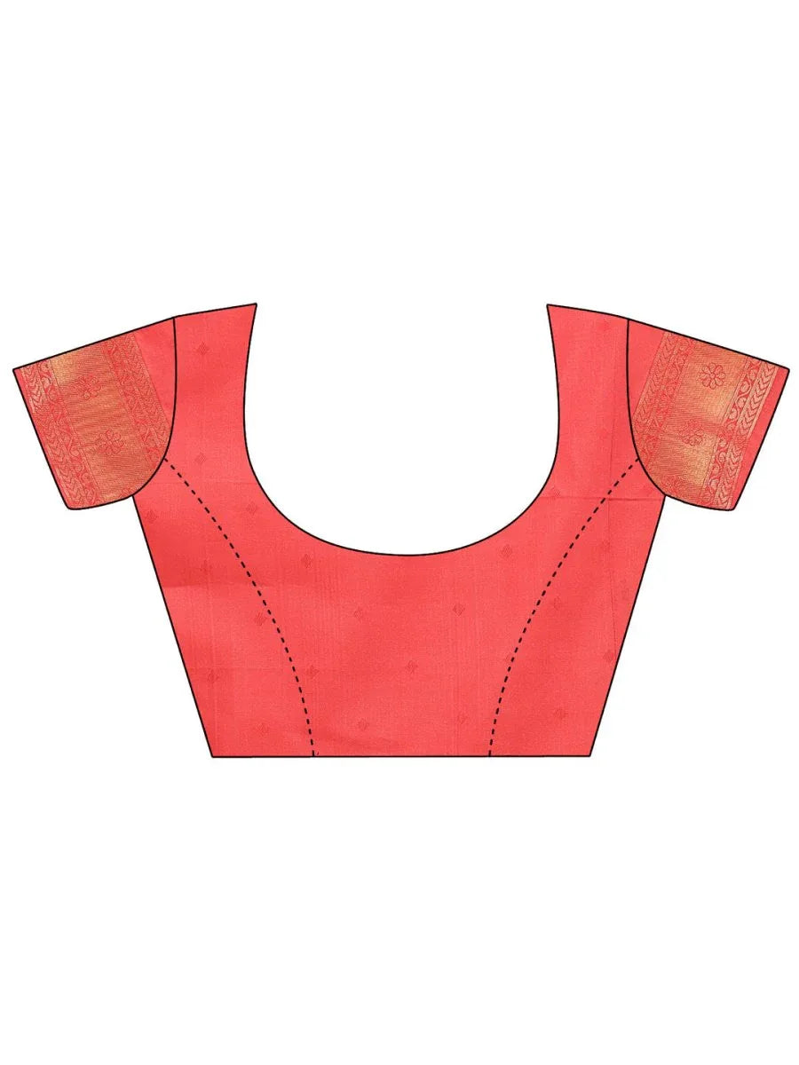 Orange & Red Banarasi Silk Saree With Blouse Piece