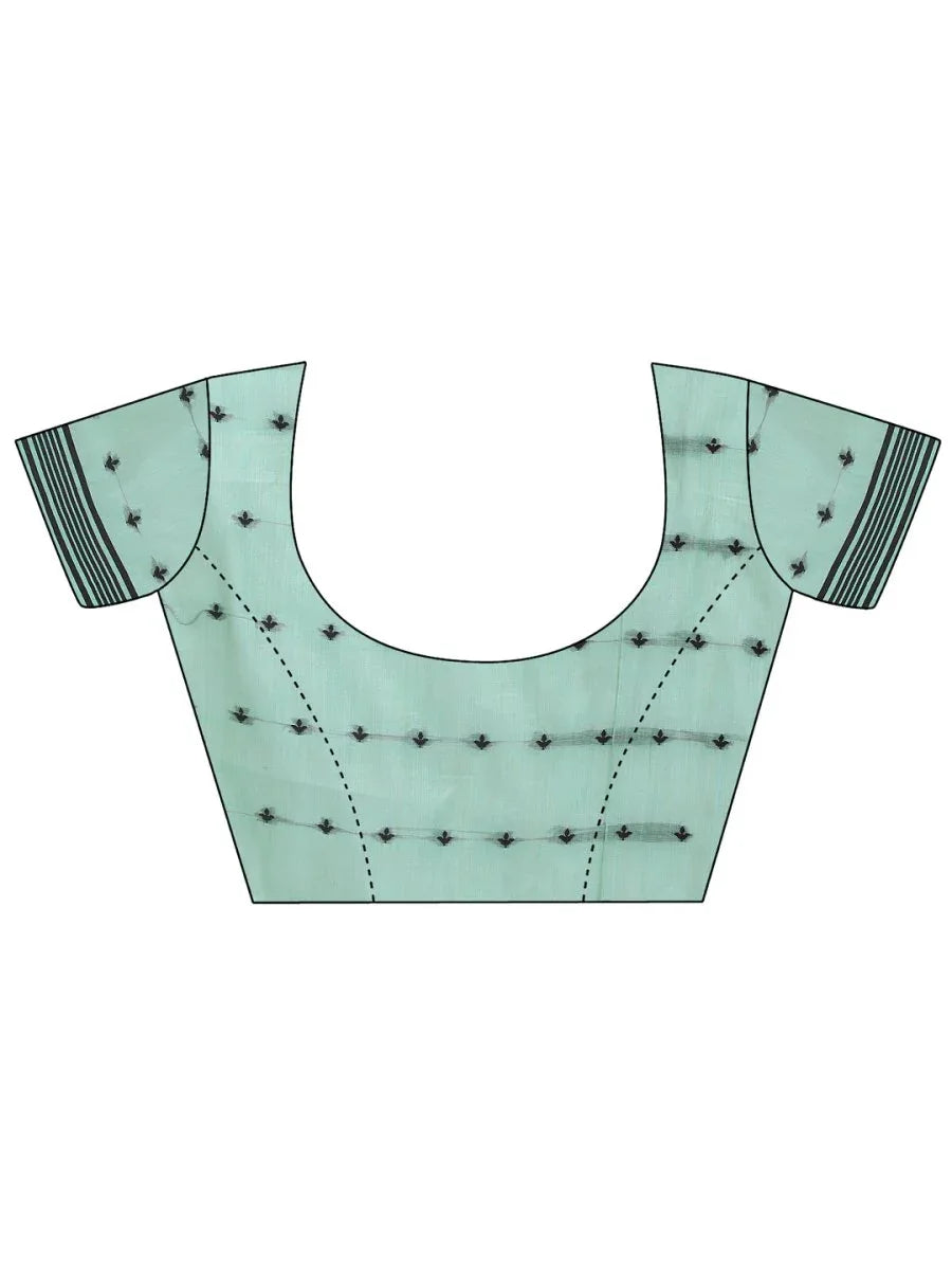 Rama Green Linen Cotton Saree With Blouse Piece