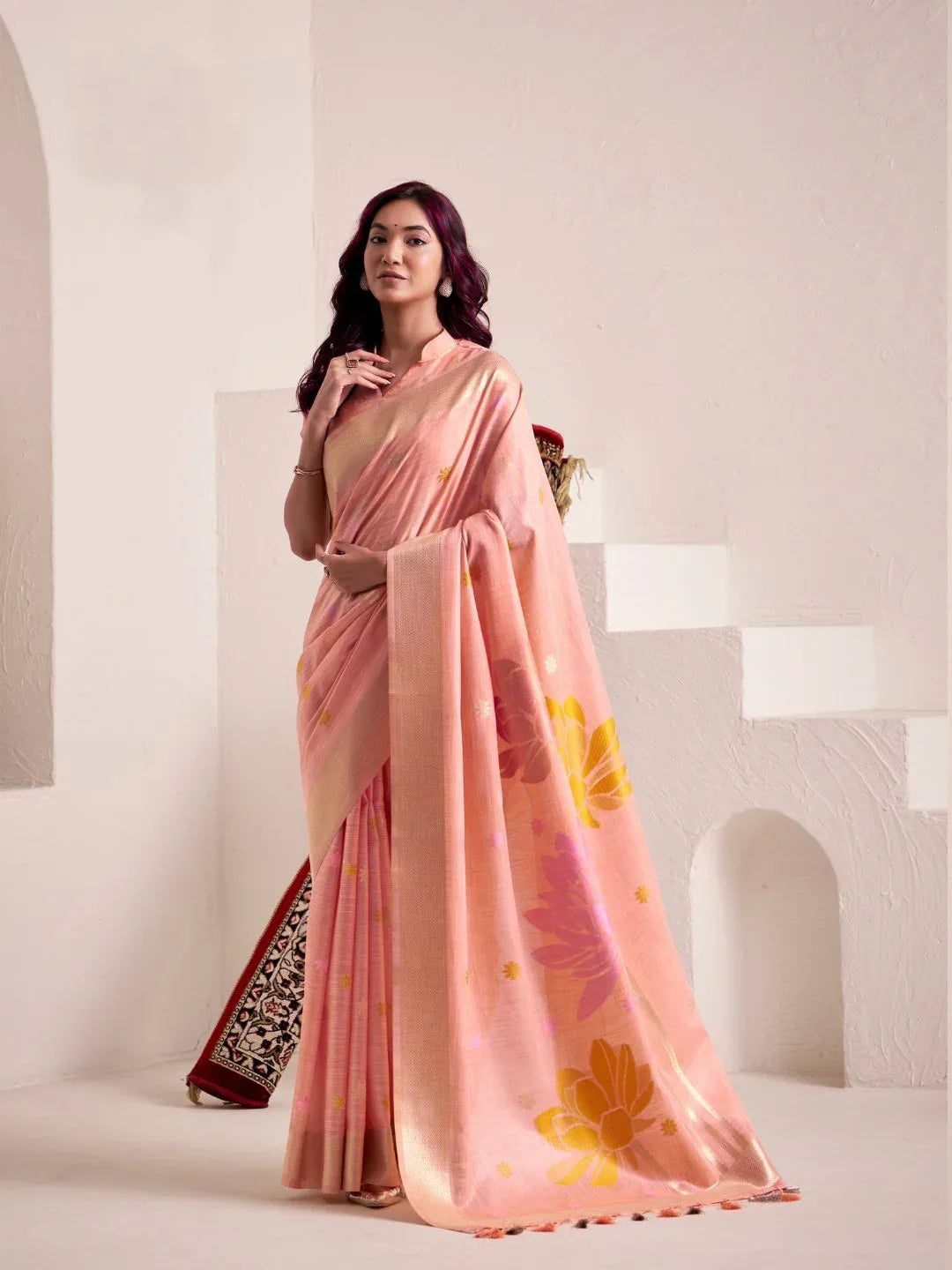 Soft Linen With Big Jaquard Pallu Handloom Saree