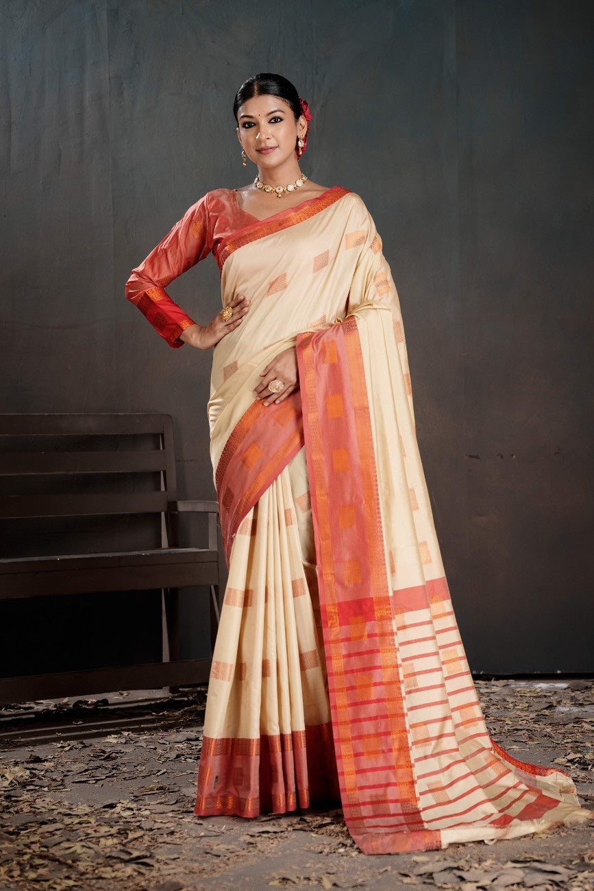 Soft Silk Chitt Pallue With Contrast Blouse Weaving Saree