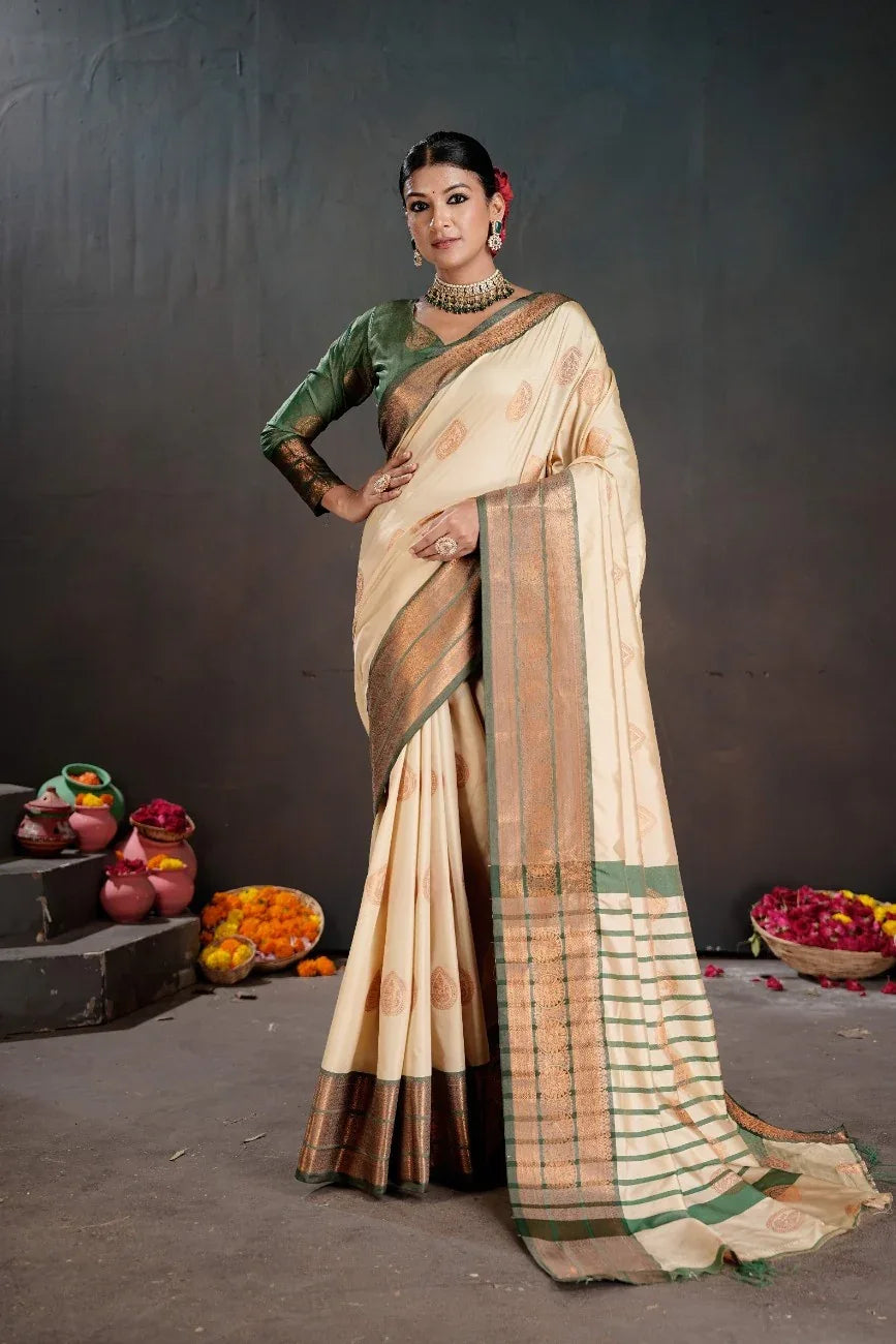 Soft Silk Chitt Pallue With Contrast Blouse Weaving Saree