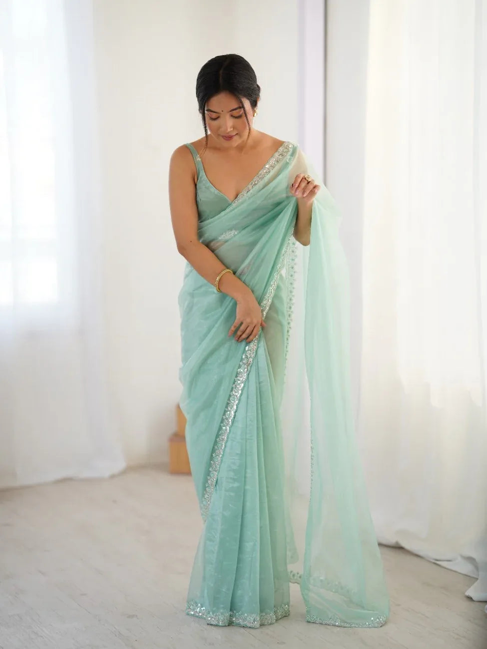 Get ready to dazzle in this exquisite twill net blouse piece, bursting with personality and sparkle! Featuring a mesmerizing blend of sequins, moto, and cutdana embroidery work, this piece is your ticket to turning every occasion into a fashion moment. The breathable twill net fabric ensures comfort while you shine, making it ideal for weddings, celebrations, and those times you want to feel absolutely fabulous. Layer it over your favorite traditional wear and watch the magic unfold. Perfect for anyone who believes that more sparkle equals more joy!
